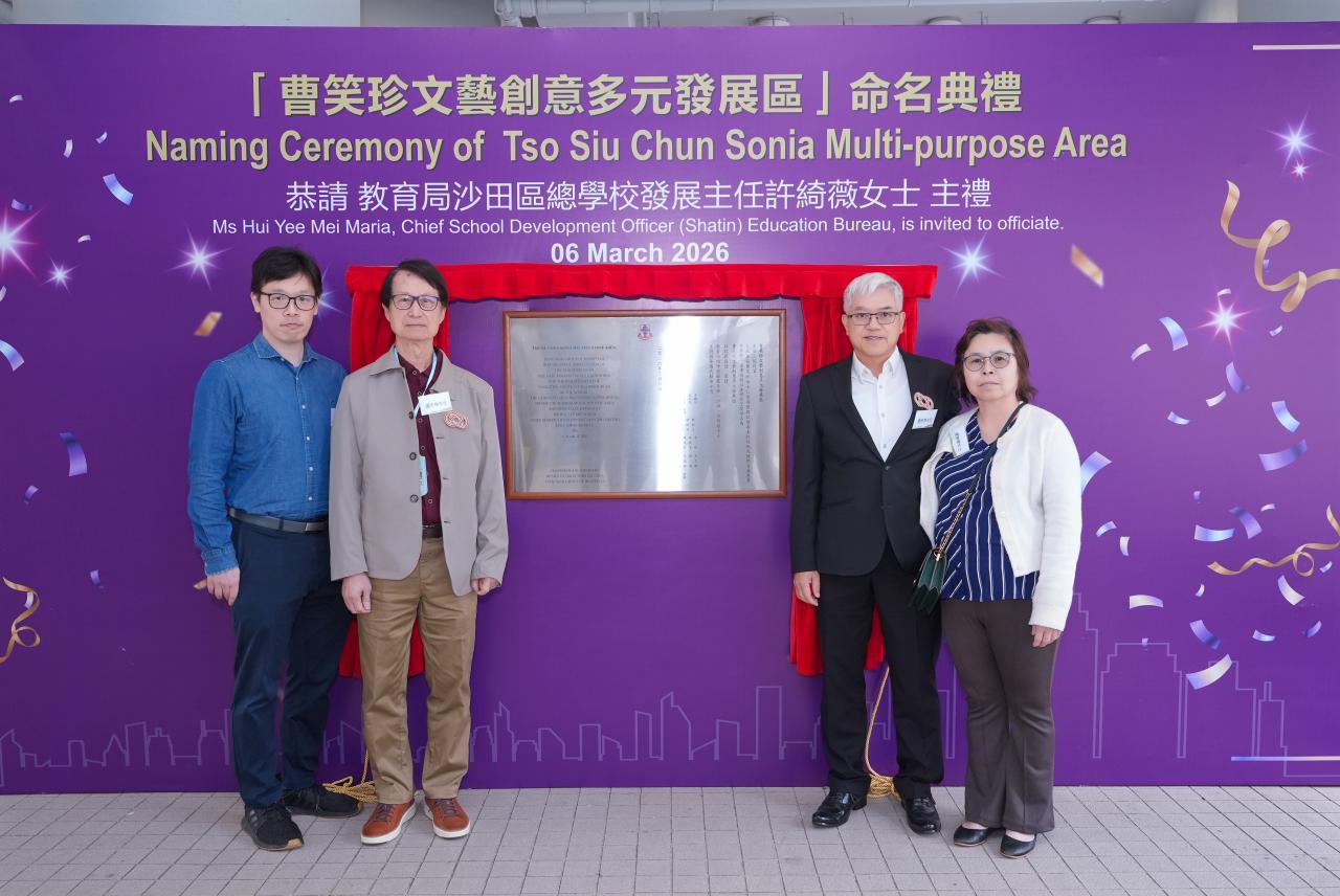 6/3/2026 marks the naming ceremony of the "Tso Siu Chun Sonia Multi-purpose Area." We would like to express our heartfelt gratitude for the generous donation from the late Ms. Tso Siu Chun Sonia, which has enabled us to engage in various interesting activities every day in this spacious and creative environment, such as sports, arts, and environmentally related events. Students are able to develop their artistic talents, explore diverse cultures, and enhance their creativity here. Once again, we thank the late Ms. Tso Siu Chun Sonia for her support.
