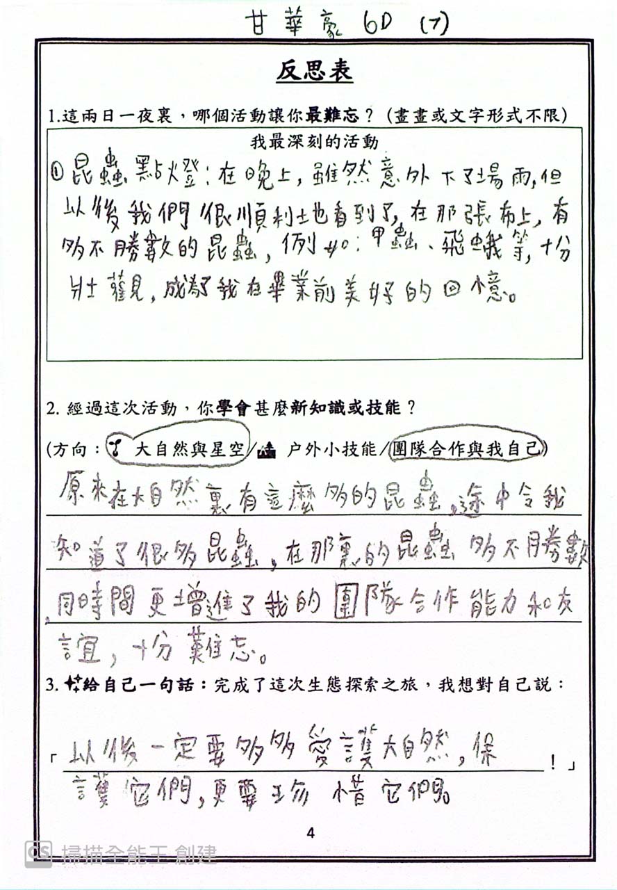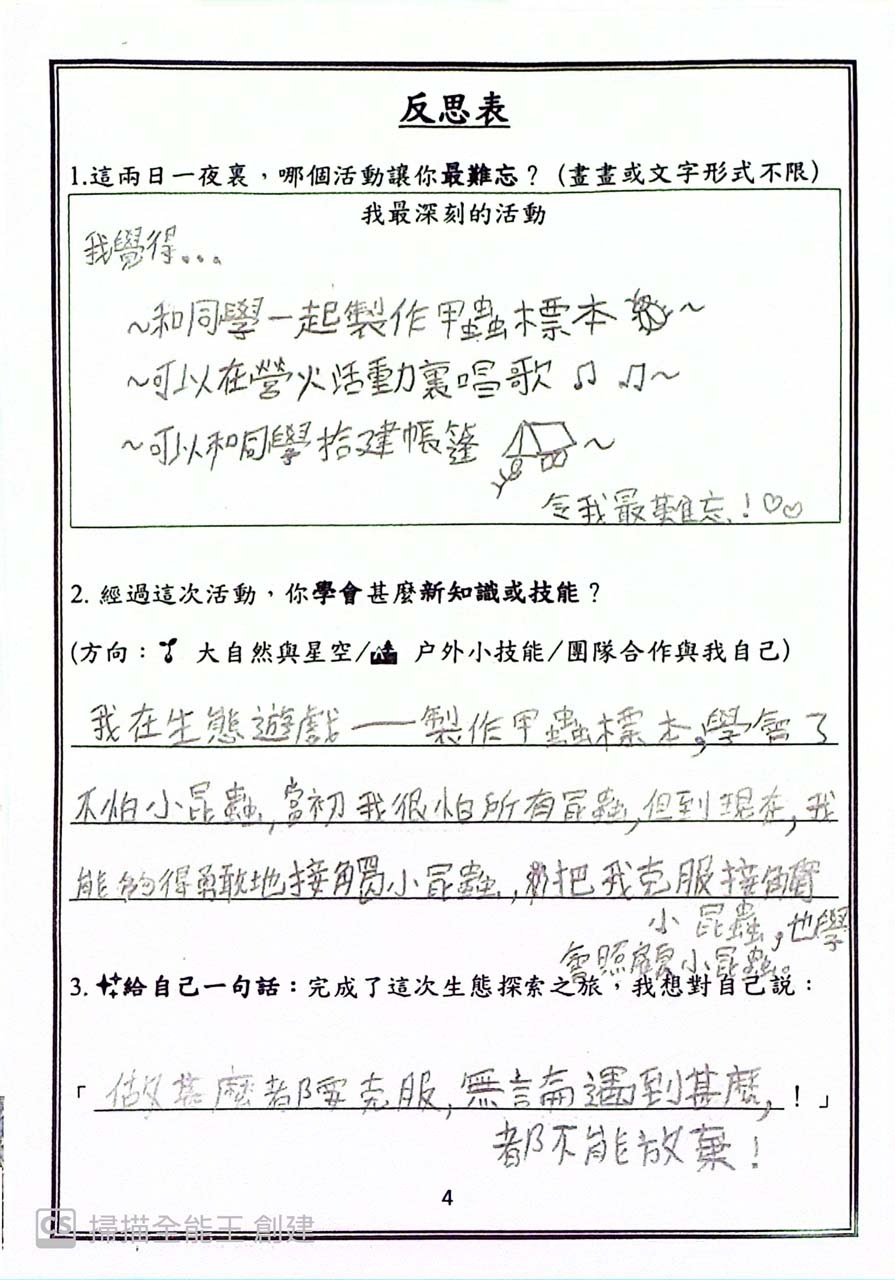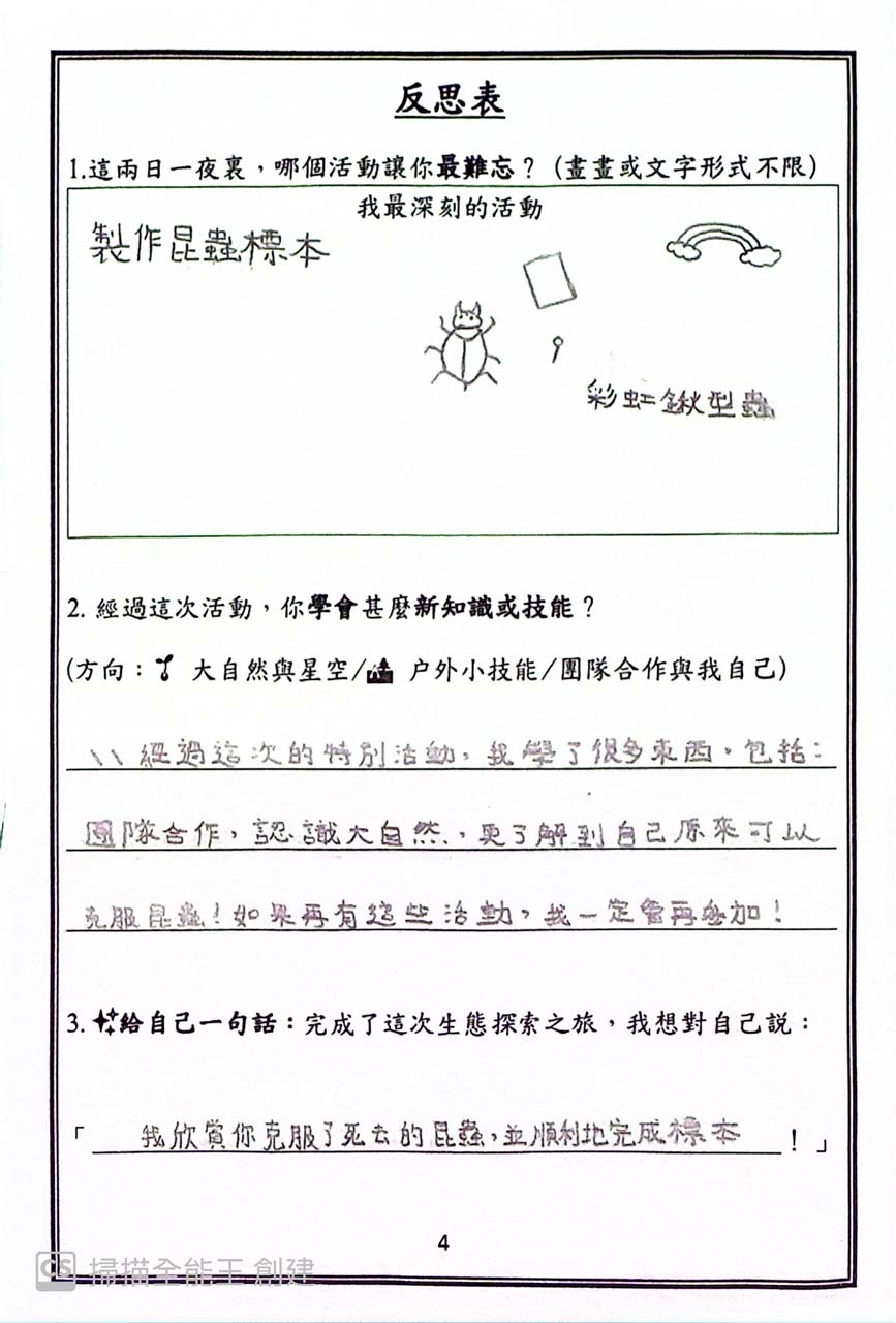 The programme included a wide variety of engaging activities, such as tent pitching, team cooking, night insect observation, and insect specimen making. Through these experiences, students enjoyed first-hand outdoor living, while developing greater self-reliance and stronger teamwork skills.