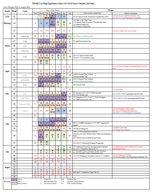 2nd Term School Calendar